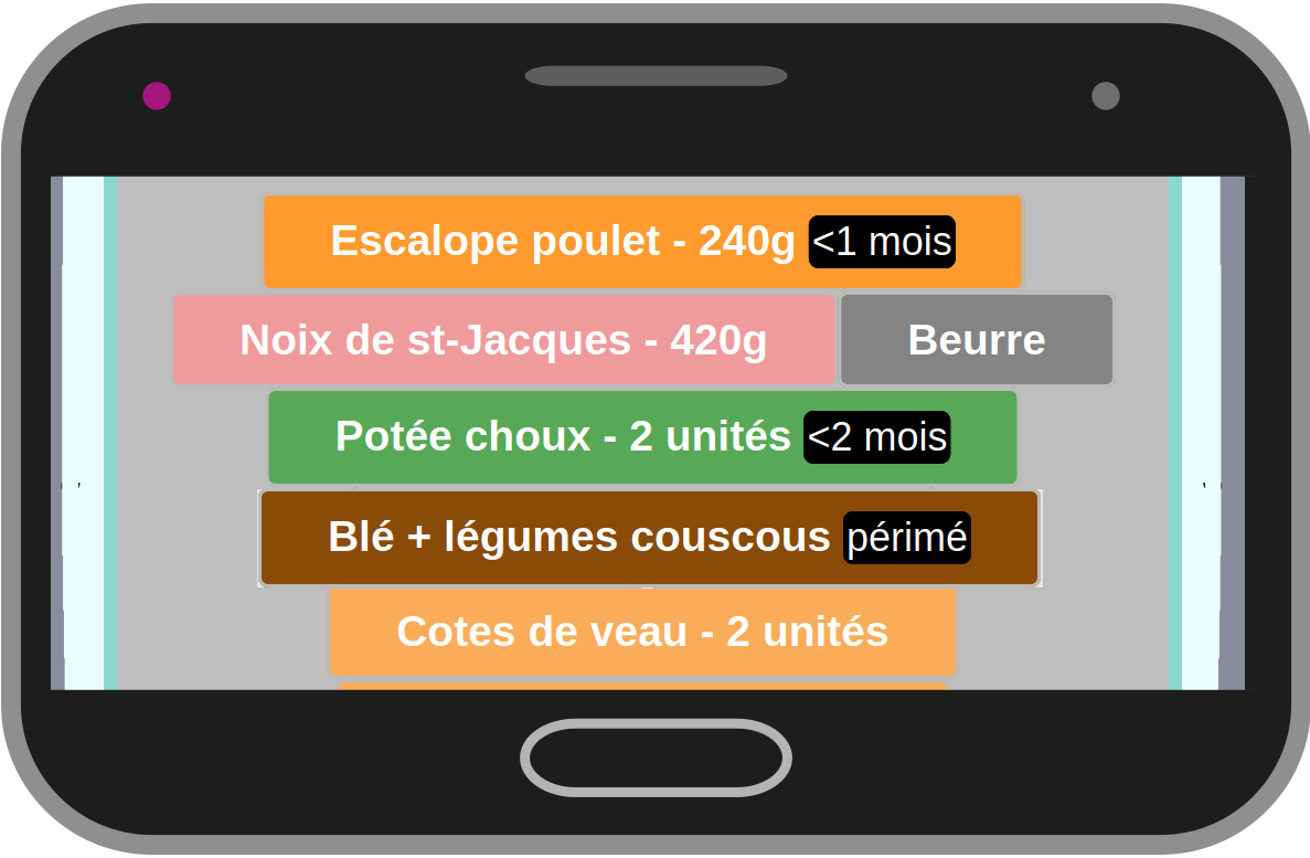 Des alertes visuelles vous préviennent de la péremption : 2 mois avant la DLC renseignée, 1 mois avant la DLC et enfin lorsque la date est dépassée.